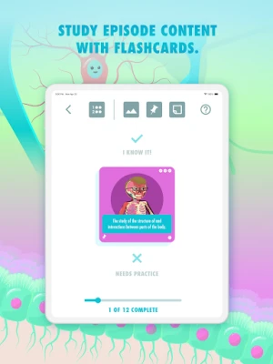 اپنے سیکھے ہوئے علم کو پختہ کرنے اور اس کا جائزہ لینے کے لیے، یہ ایپلیکیشن اضافی تعلیمی وسائل جیسے فلیش کارڈز اور کوئزز کی سہولت فراہم کرتی ہے۔ ہر ویڈیو لیسن کے ساتھ ڈیزائن کیے گئے یہ فلیش کارڈ ڈیکس فی الحال اناٹومی اینڈ فزیالوجی، کیمسٹری اور آرگینک کیمسٹری کے تمام اسباق کے لیے دستیاب ہیں۔ یہ طاقتور ٹولز نہ صرف آپ کی یادداشت کو تیز کرتے ہیں بلکہ آپ کو اپنے مضامین پر مکمل عبور حاصل کرنے میں بھی مدد دیتے ہیں۔ ہماری ٹیم مسلسل نئے تعلیمی مواد اور فلیش کارڈ ڈیکس کا اضافہ کر رہی ہے تاکہ آپ کی تعلیمی ضروریات ہمیشہ پوری ہوتی رہیں۔