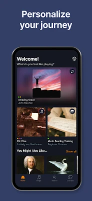 flowkey کی انٹرایکٹو خصوصیات آپ کی مشق کو آسان اور مؤثر بناتی ہیں۔ 'ویٹ موڈ' کی بدولت آپ کو اپنی کارکردگی پر فوری رائے ملتی ہے؛ یہ اس وقت تک انتظار کرتا ہے جب تک آپ درست نوٹ یا کوڈ نہیں بجاتے، جو مائیکروفون یا MIDI کنکشن کے ذریعے کام کرتا ہے۔ 'لوپ' فنکشن آپ کو کسی مخصوص حصے کو بار بار مشق کرنے کی آزادی دیتا ہے جب تک کہ وہ مکمل طور پر درست نہ ہو جائے۔ 'ہاتھ کا انتخاب' کی خصوصیت دائیں اور بائیں ہاتھ کے نوٹوں کی الگ الگ مشق کے لیے مثالی ہے۔ مزید برآں، 'ویڈیو' کے ذریعے آپ پیشہ ور پیانو بجانے والے کو دیکھ سکتے ہیں، اگلے نوٹ کی ہائی لائٹ کردہ رہنمائی حاصل کر سکتے ہیں اور انگلیوں کی صحیح ترتیب سیکھ سکتے ہیں۔ اگر آپ محض دھنوں سے لطف اندوز ہونا چاہتے ہیں، تو 'جسٹ پلے' موڈ آپ کے ساتھ ہم آہنگی رکھتا ہے، چاہے آپ چند نوٹوں سے محروم رہیں۔ ٹیبلٹ استعمال کرنے والوں کے لیے، پورٹریٹ موڈ میں 'فل شیٹ میوزک ویو' روایتی شیٹ میوزک پڑھنے والوں کے لیے ایک بہترین سہولت ہے۔