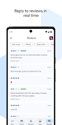 مالیاتی معاملات میں، آپ کے پاس اپنے صارفین کے آرڈرز کو مؤثر طریقے سے سنبھالنے اور انہیں باآسانی رقم کی واپسی (ریفنڈز) جاری کرنے کی مکمل صلاحیت موجود ہے۔ یہ خصوصیت نہ صرف آپ کے کسٹمر سروس کے معیار کو بلند کرتی ہے بلکہ صارفین کا اعتماد جیتنے میں بھی مددگار ثابت ہوتی ہے۔ اس کے ساتھ ہی، آپ اپنی ایپ کے بارے میں دی گئی تمام آراء اور جائزوں کو فوری طور پر دیکھ سکتے ہیں اور ان کا بروقت، بامعنی جواب دے سکتے ہیں۔ صارفین کے تاثرات کو سمجھنا اور ان پر عمل کرنا آپ کی ایپ کی مسلسل بہتری اور صارف کی اطمینان کے لیے ناگزیر ہے۔