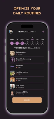 Holohabits کے اندر، آپ کو اپنی روزمرہ کی عادات کو نکھارنے کے لیے بے شمار مواقع ملتے ہیں۔ 'عادت کے چیلنجز' کے ذریعے، حقیقی دنیا کے ماہرین اور پیشہ ور بایوہیکرز آپ کو بہترین روزمرہ کے معمولات تیار کرنے کی رہنمائی کرتے ہیں، چاہے وہ متوازن تغذیہ، موثر ورزش، یا مکمل بحالی سے متعلق ہوں۔ 'ہولوقبیلے (Holotribes)' میں شامل ہوں یا اپنا بنائیں، اپنے دوستوں کو مدعو کریں اور صحت مند طریقوں کو ایک ساتھ اپنائیں۔ 'قبیلہ کی پوسٹس' کے ذریعے اپنی پیشرفت اور طرز زندگی کا اشتراک کریں، تبصرے کریں، پسند کریں اور دوسروں کو حوصلہ دیں۔ مسلسل نتائج کی فراہمی کے ذریعے 'قبیلہ لیڈر بورڈ' میں صفوں میں اوپر اٹھیں اور اپنی کامیابیوں، جیسے کہ بہترین نیند کا سکور یا مسلسل ورزش، پر پہچان اور جشن منائیں۔